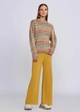 Kaşmir Karışımlı Bağcıklı Sarı Triko Pantolon