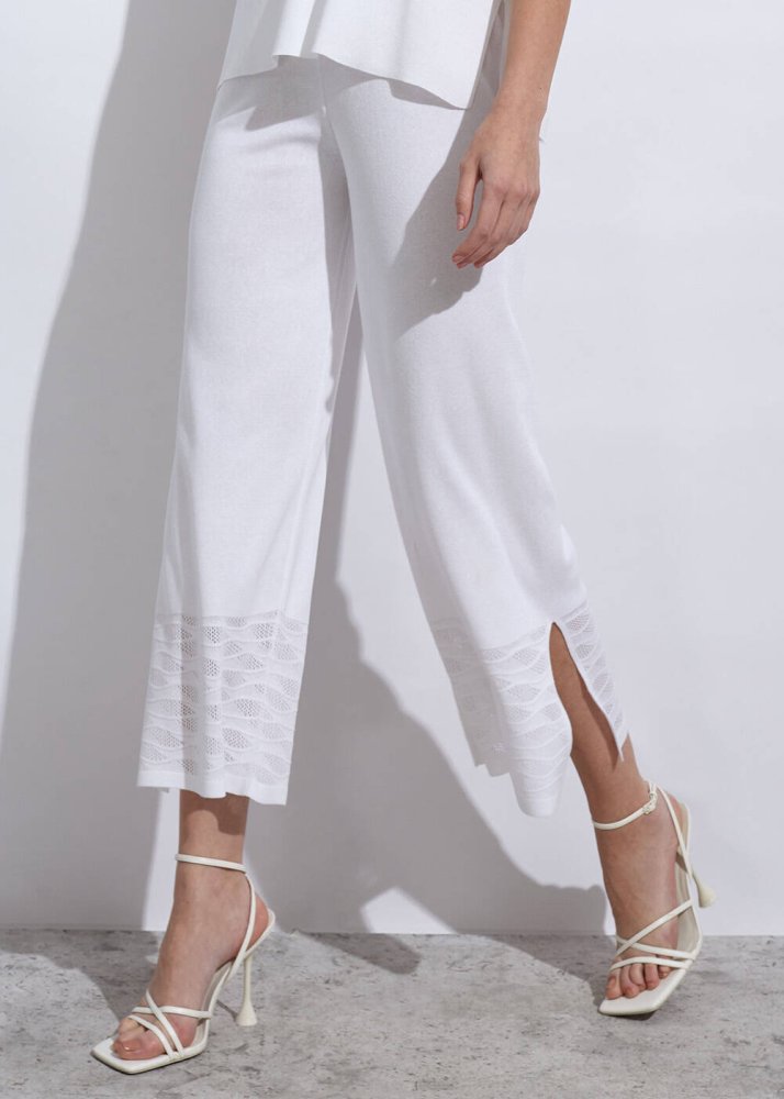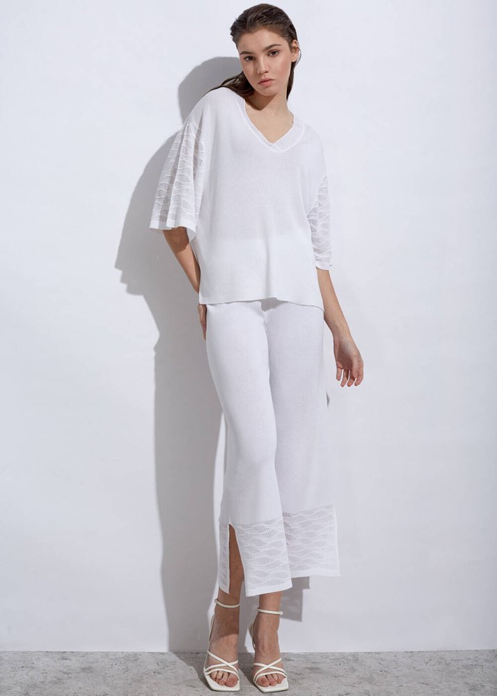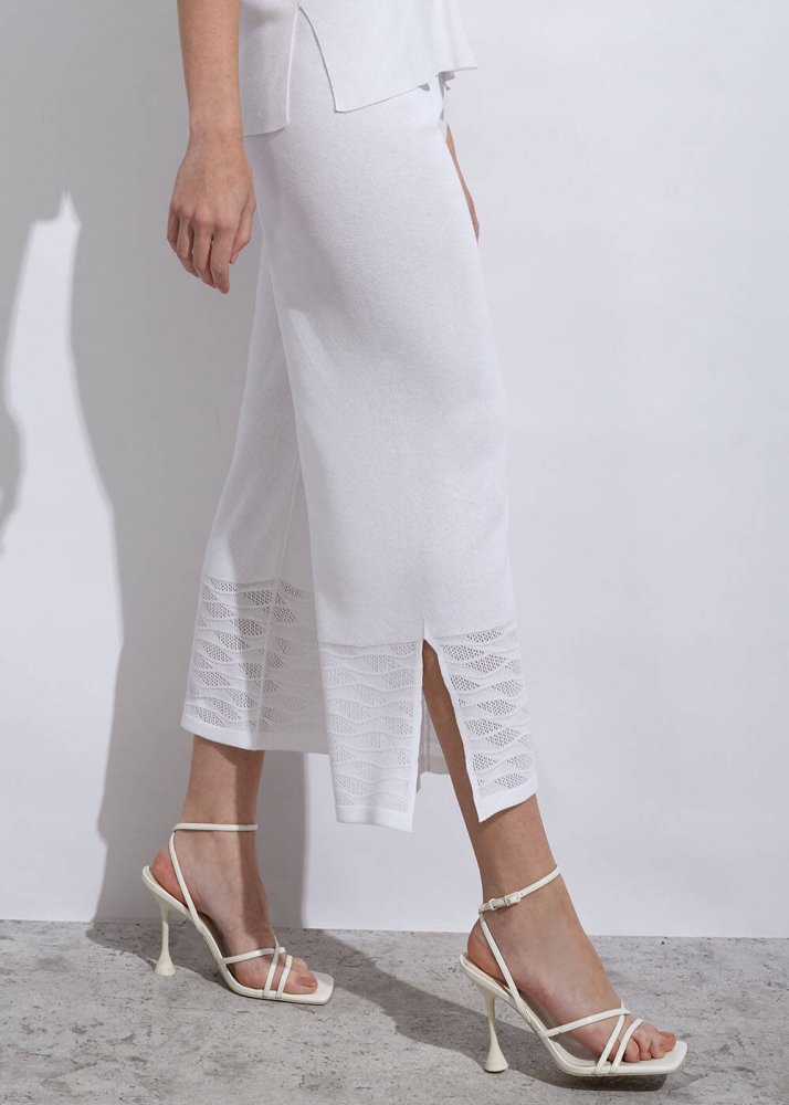 Örgü Detaylı Crop Beyaz Triko Pantolon