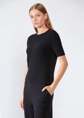 Her kadının gardırobunda olması gereken siyah triko üst, Knitss farkı ile karşınızda. Sürdürülebilir modacılık ilkelerine uygun olarak geri dönüştürülmüş sertifikalı İtalyan ipliklerinden üretilen siyah kısa kollu triko üst, günün her anına uygun zamansız şıklığı ile çok kullanışlıdır. Zarif örgü deseni, mükemmel kalıbı ve triko konforu ile kombinlerinizin vazgeçilmezi olmaya adaydır.