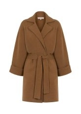 Oversize kaşmir kaban; bol kesim kolları, bel ve yaka kısmındaki trikoya özgü örgü detayı, kullanışlı yan cepleri ve kendinden kemerli modeli ile çağdaş Knitss stilinde özel bir parçadır. Çevre dostu sertifikalı kaşmir içeriği ile sürdürülebilir moda ilkelerine uygun olarak üretilen camel kaban, kaşmirin sıcacık tutan yapısı ve yumuşak yüzeyi ile birinci sınıf kalitededir.