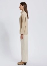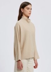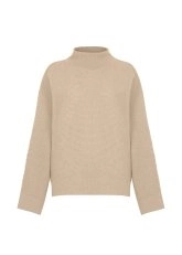 Oversize Mock Neck Cream Cashmere Knit Sweater