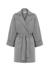 Oversize Self Belted Cashmere Grey Knit Coat