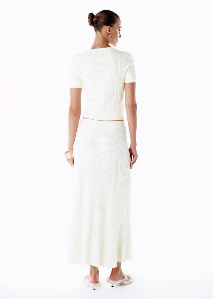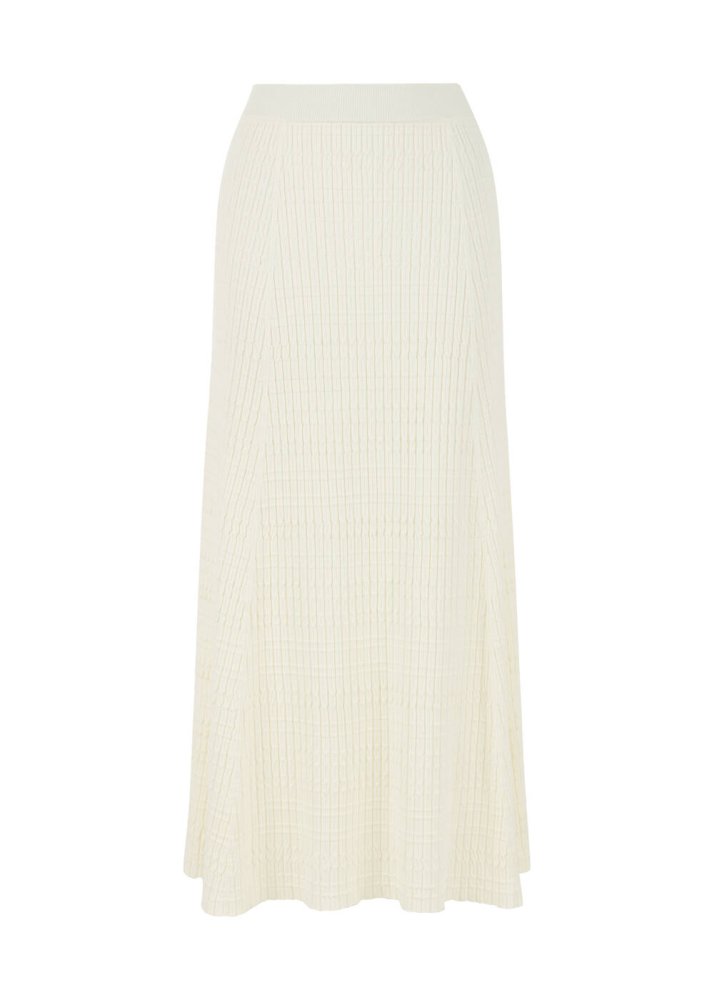 Özel Örgü Detaylı Ekru Triko Etek