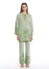PALM TREE AND PARROT PATTERNED KNIT PANTS