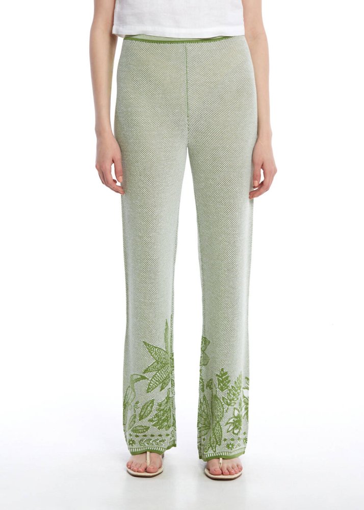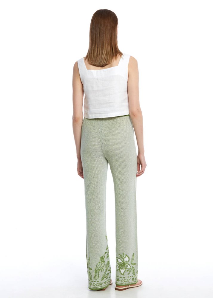 Palmiye ve Papağan Desenli Triko Pantolon