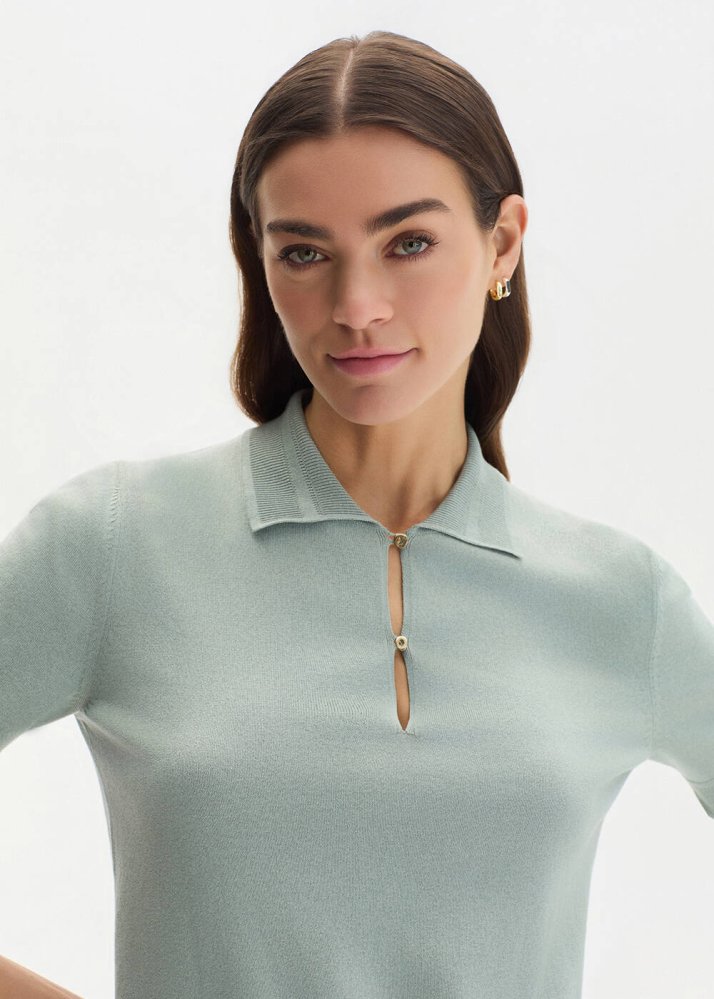 Pamuk İpek Karışımlı Kil Yeşili Triko Üst, doğal tonların sakinliğini ipeğin zarif dokunuşuyla buluşturur. Polo yaka detayı ve kısa kol kesimiyle dengeli bir görünüm sunarken, hafif yapısı gün boyu konfor sağlar. Pamuk ve ipek karışımlı dokusuyla, yalın ama rafine bir stil anlayışını yansıtır.