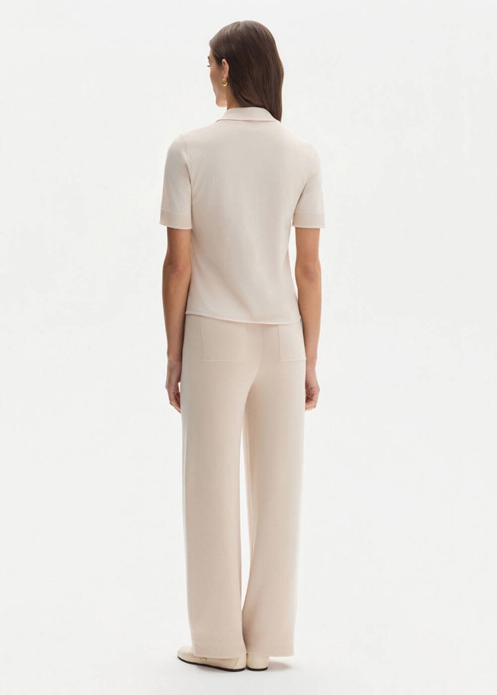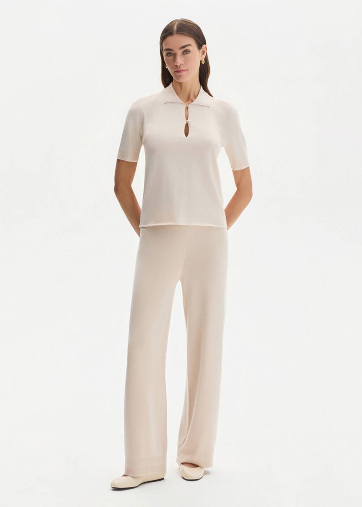 Pamuk ve ipek karışımı dokusuyla hafif, yumuşak ve akışkan bir his sunan naturel triko üst, polo yaka ve düğme detayıyla sade bir görünüm sağlar. Kısa kol formu ve ince örgü yapısıyla vücuda dengeli bir siluet kazandırır. Tek başına ya da takımıyla birlikte zahmetsiz bir şıklık sunar.