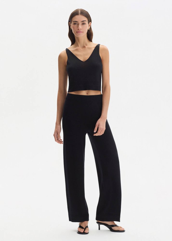 Pamuk İpek Karışımlı Siyah Triko Pantolon