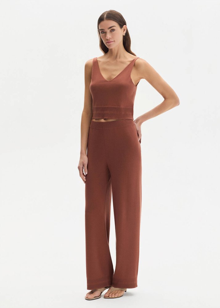 Pamuk İpek Karışımlı Tarçın Rengi Triko Pantolon