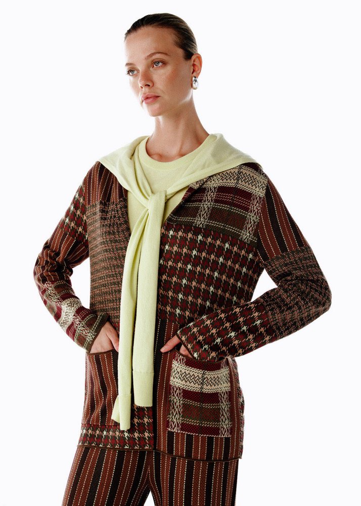 Patchwork Desenli Triko Ceket
