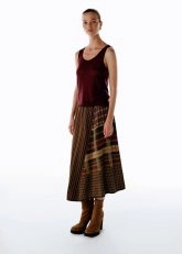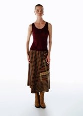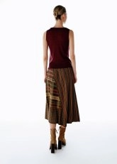 Knitss’in renk oyunlarını modern çizgilerle bir araya getirdiği patchwork desenli triko etek, gardırobun en yaratıcı parçalarından biri. İtalyan iplikten üretilen bu etek, elastik beliyle rahatlık sunarken patchwork desenleriyle göz alıcı bir dinamizm taşır. %70 FSC viskon, %15 pamuk, %8 poliamid ve %7 polyester karışımı, yumuşak ve akışkan bir form kazandırır. Triko tunik, ceket ya da minimal bir üstle kombinlendiğinde günün her anına uyum sağlayan sofistike bir denge oluşturur.