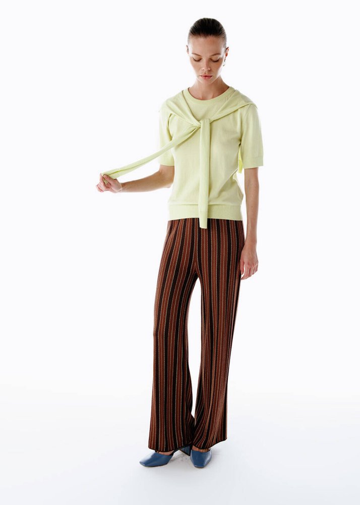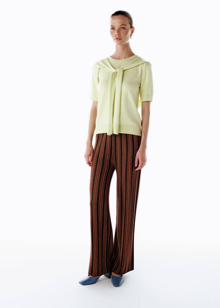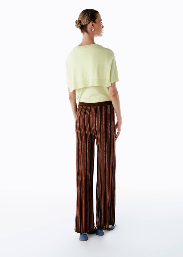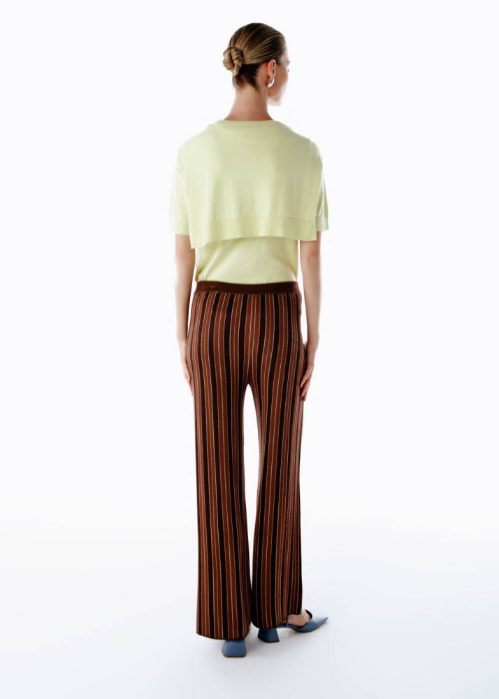 Patchwork desenli triko pantolon, modern sanat dokunuşunu günlük stile taşıyor. Renk geçişleri ve desen detaylarıyla dikkat çeken bu özel tasarım, aynı serinin triko ceketiyle kombinlendiğinde etkileyici bir bütünlük yaratıyor. Yumuşak İtalyan ipliği ve %95 FSC Viskon %5 Elastan karışımı, konforlu bir esneklik sunarken formunu korur. Elastik beli sayesinde gün boyu rahat bir kullanım sağlar. Triko üstlerle eşleştirildiğinde de güçlü bir denge yakalar; cesur ama zahmetsiz bir şıklığın temsilcisidir.