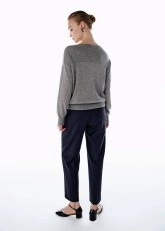 Lacivert pile detaylı çizgili yün pantolon, şehirli stilin en sofistike yorumlarından biri. Pileli formu vücuda dökümlü bir siluet kazandırırken, elastik arka bel detayı rahatlığı garanti eder. İnce çizgili deseni klasik bir duruş sunarken, %86 yün içeriğiyle kaliteyi hissettirir. Yan ve arka cepler, tasarıma pratik bir denge kazandırır. Knitss’in özgün estetiğini taşıyan bu pantolon, triko üstlerle ve ceketlerle kombinlendiğinde zahmetsizce şık, güçlü bir görünüm oluşturur.