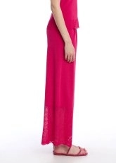 Özgüvenli, iddialı, ayrıcalıklı… Fuşya rengi geniş paça triko pantolon, pile detayı ve paçalarındaki özgün desen işçiliği ile Knitss kadınlarının kalp atışlarını hızlandırmak için tasarlandı. Doğayla uyumlu İtalyan iplik kalitesini sofistike bir stil ve konforla taçlandıran bu fuşya triko pantolonla, adımınızı attığınız her yerde bakışları üzerinizde taşımaya hazır olun.
