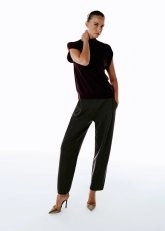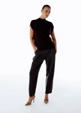 Pilelerin zarif çizgileriyle hareket kazanan koyu kahverengi triko pantolon, fonksiyonel ve stil sahibi bir görünüme davet ediyor. Elastik bel tasarımı konforu artırırken, fileto cep detayları modern bir incelik katıyor. İtalyan ipliğinin yumuşak dokusu vücuda uyum sağlıyor, günün her anında rahat bir deneyim yaşatıyor. Ofiste ceketle, hafta sonunda basic triko üstlerle kombinlenerek farklı stiller yaratılabiliyor. Hem rahatlığından ödün vermeyen hem de incelikli bir stil arayanlar için ideal.