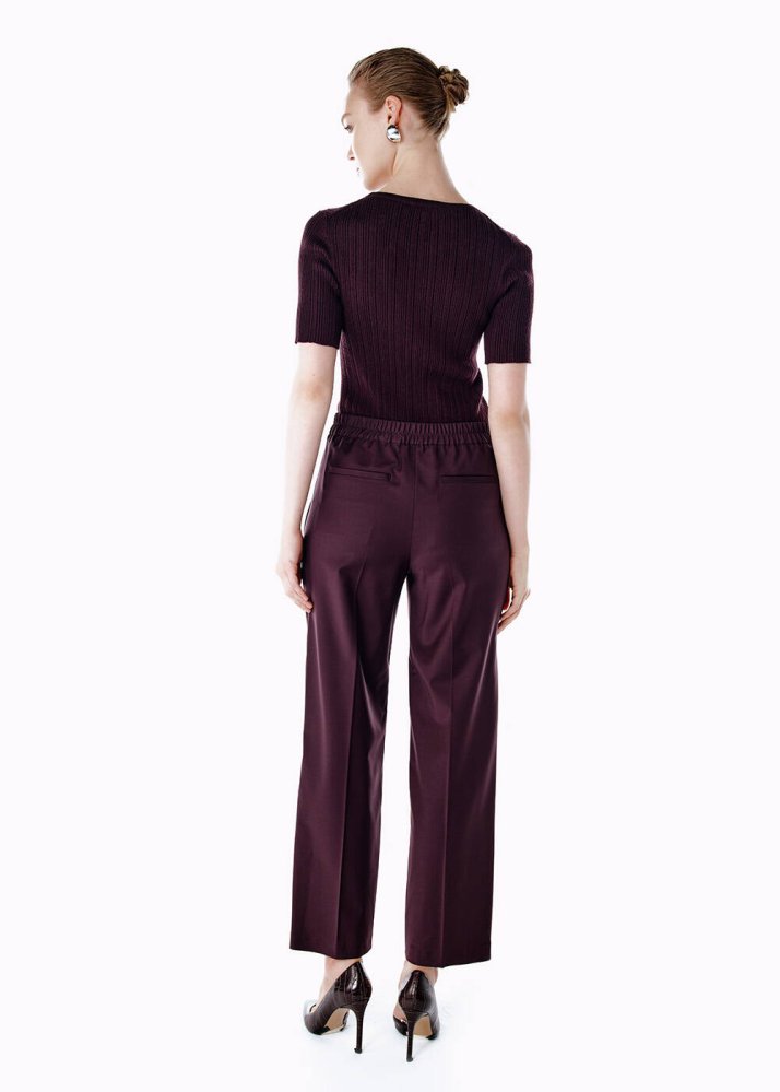 Pile Detaylı Yün Pantolon Mürdüm
