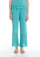 PLEAT DETAILED TURQUOISE KNIT PANTS