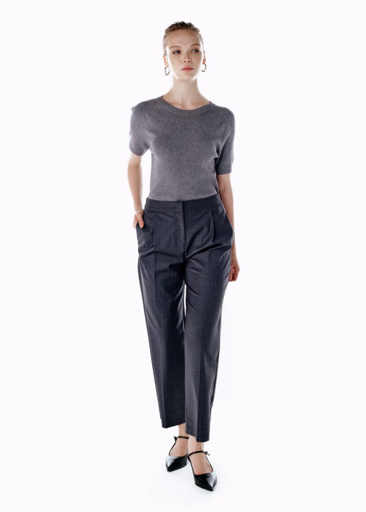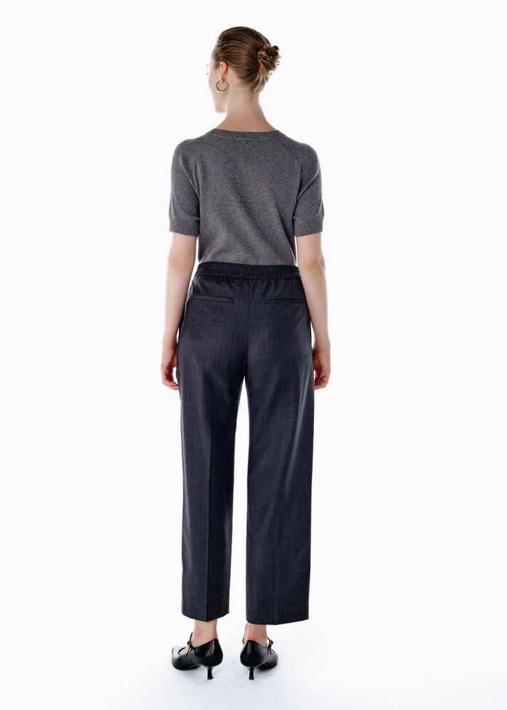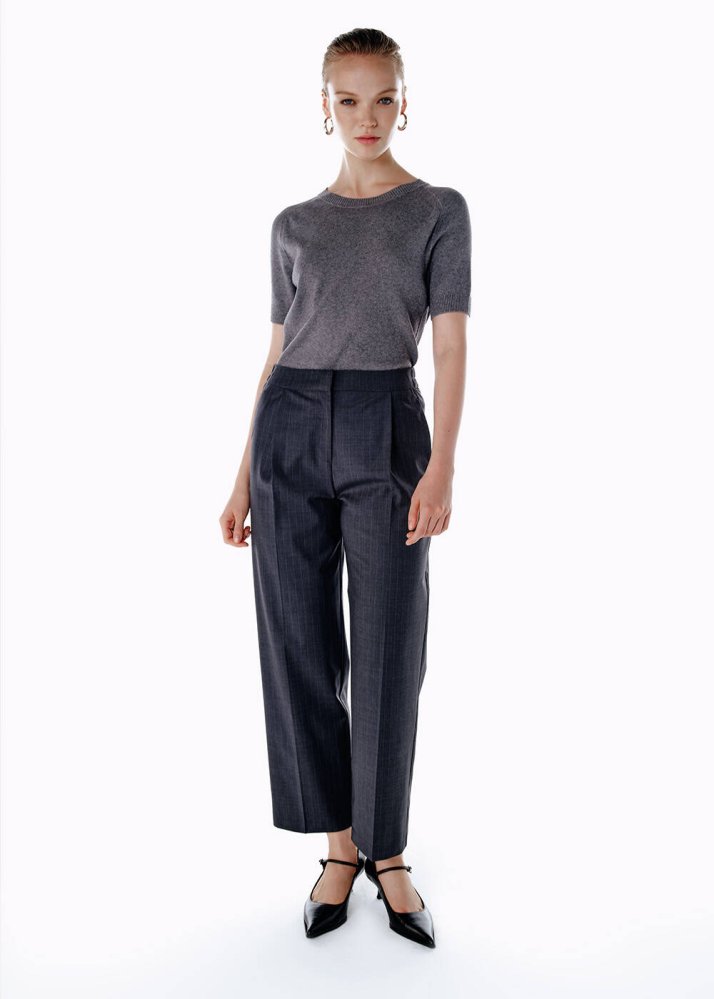 PLEATED DETAIL STRIPE WOOL PANTS GREY