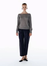 PLEATED DETAIL STRIPE WOOL PANTS NAVY