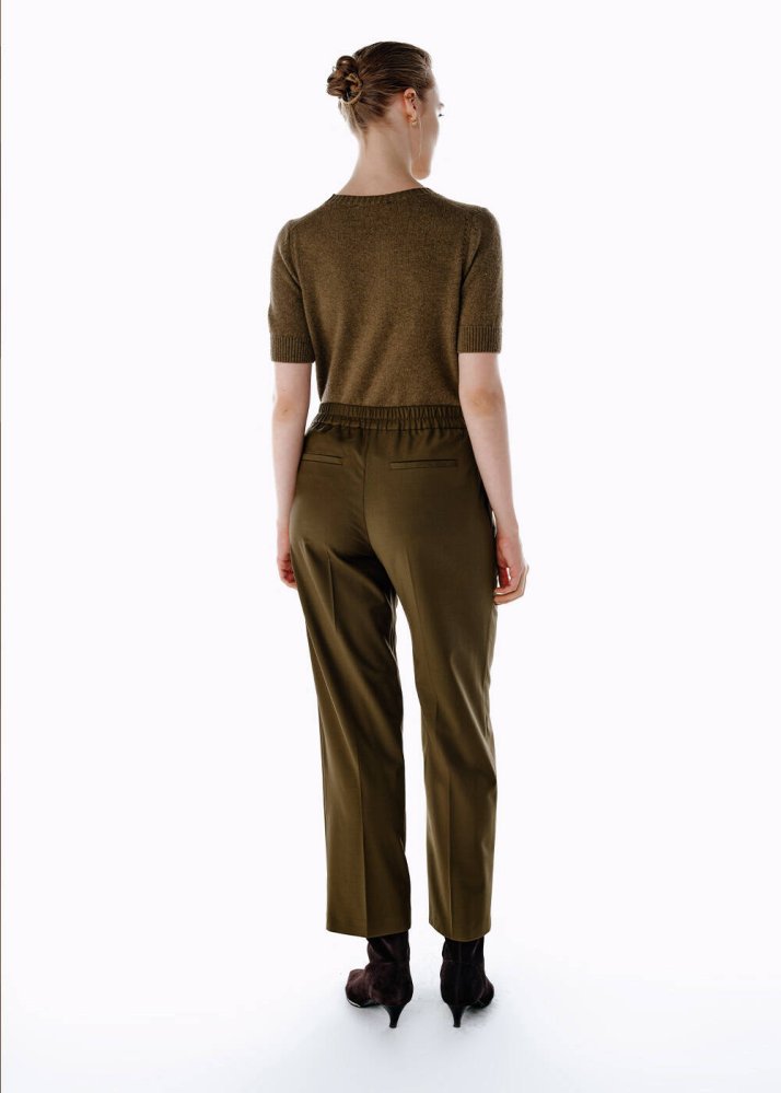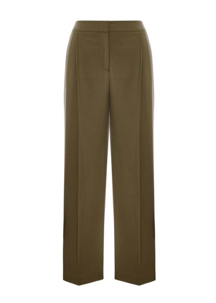 PLEATED DETAIL WOOL PANTS OLIVESTONE