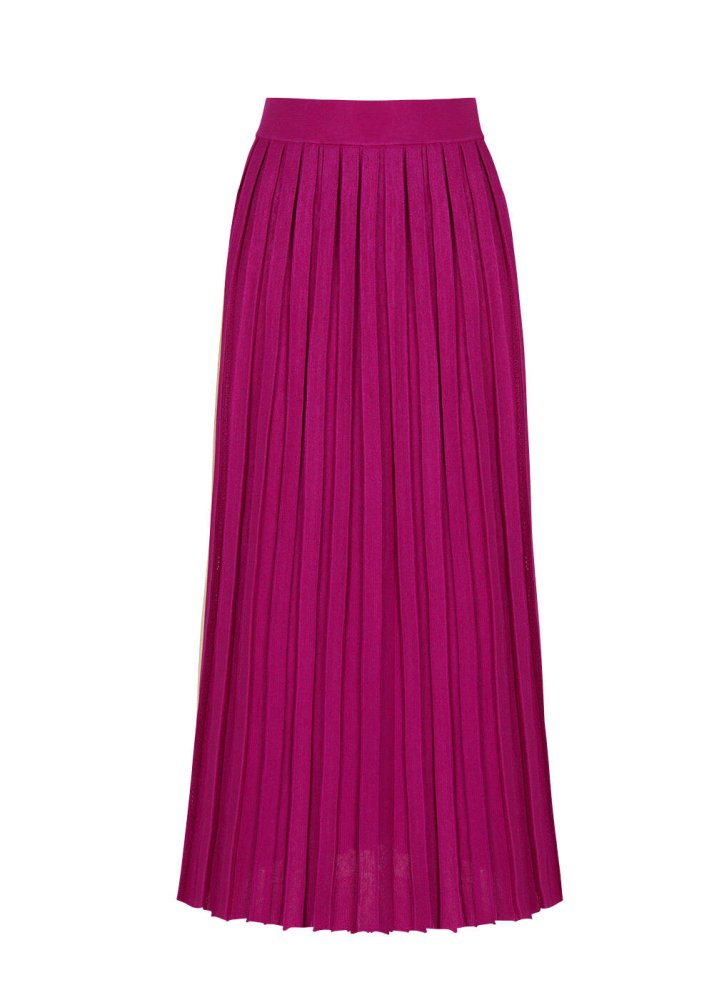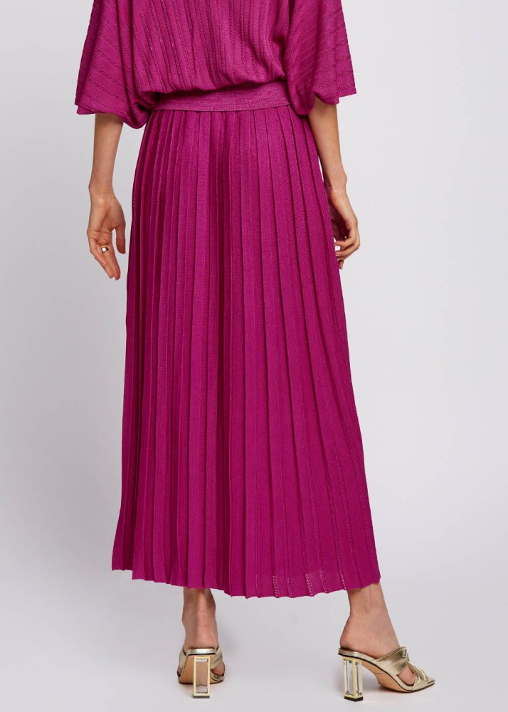 Pleated Maxi Fuchsia Knit Skirt