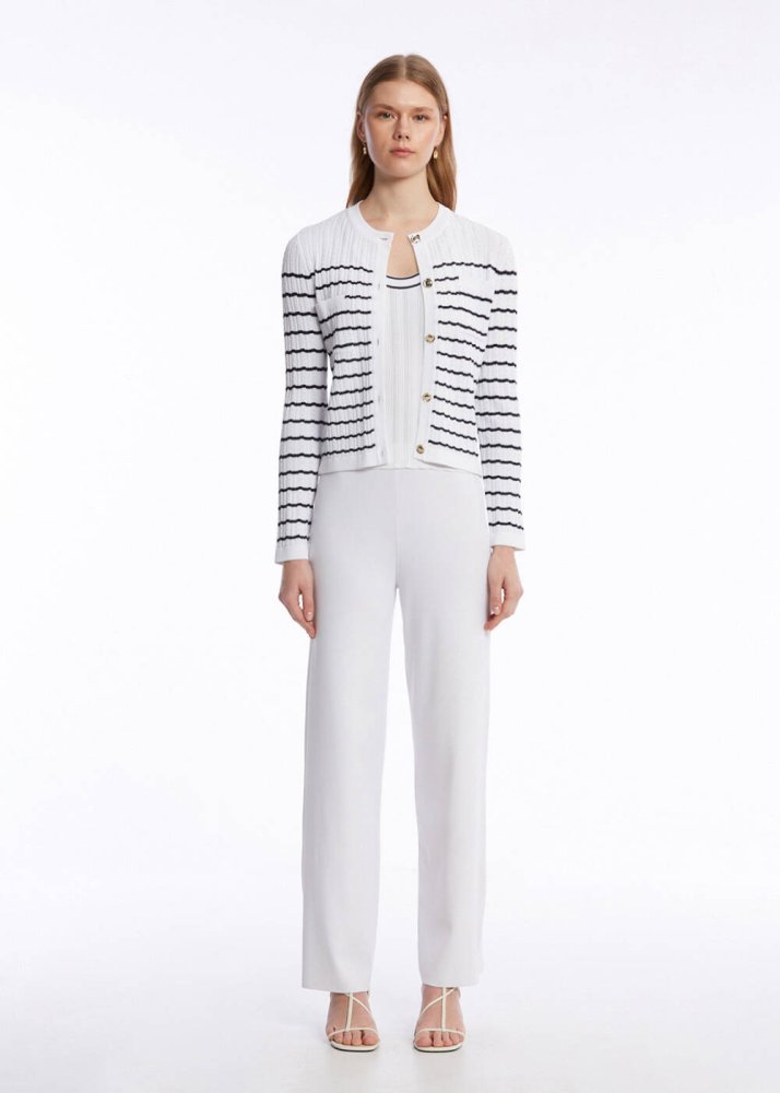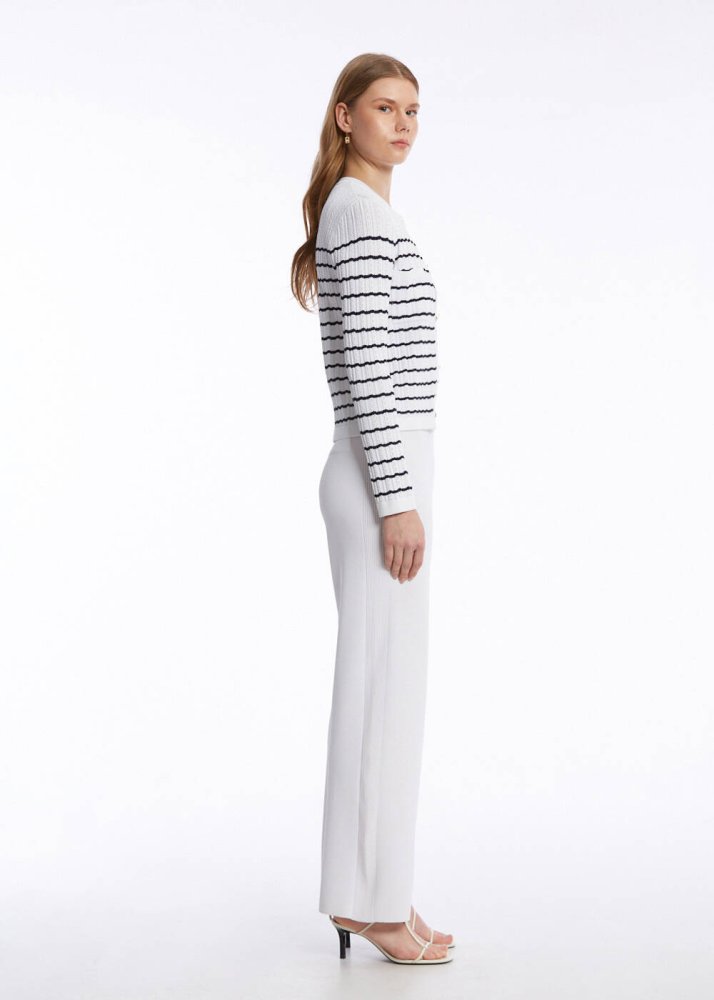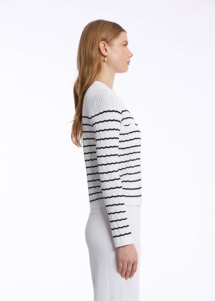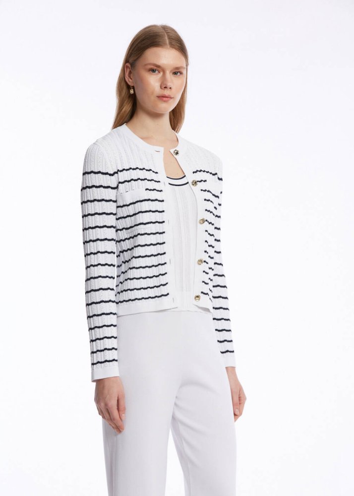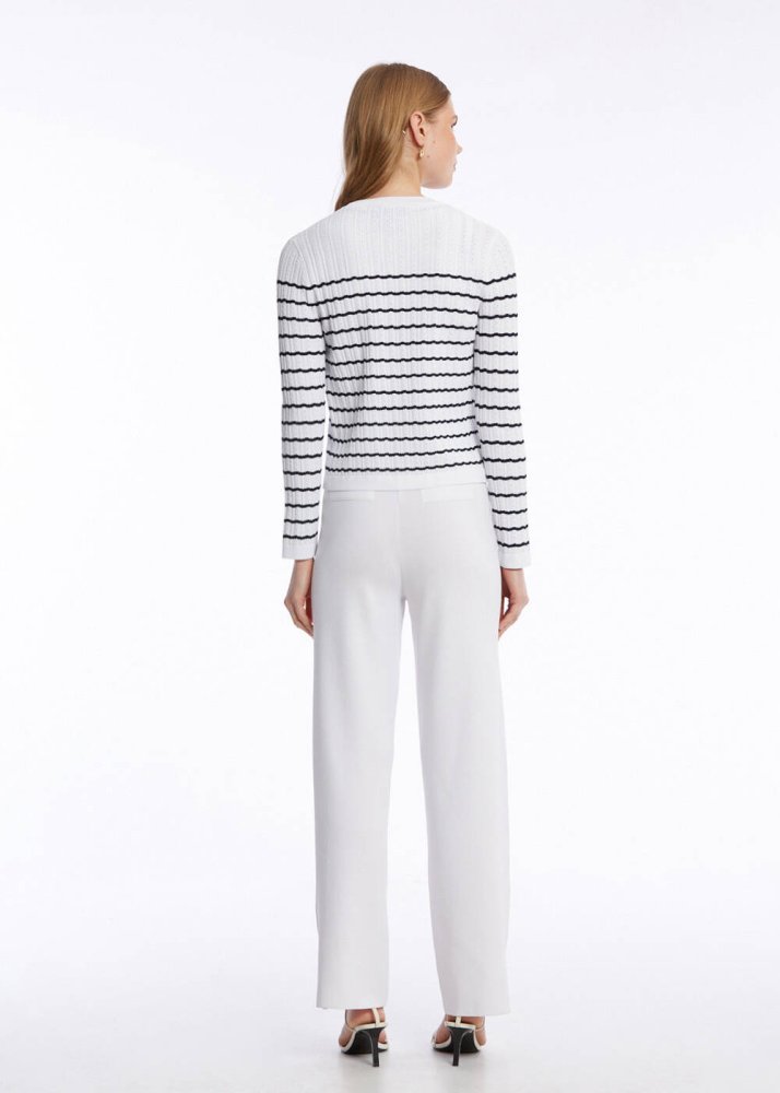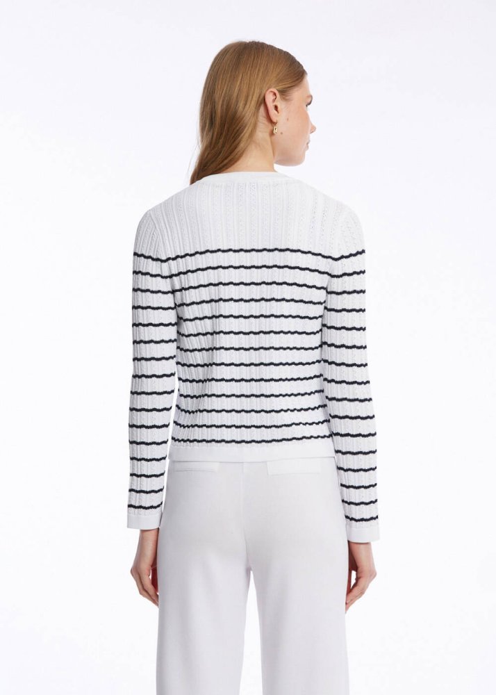 POINTELLA DETAIL WHITE NAVY KNIT CARDIGAN