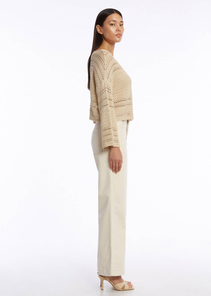 POINTELLA DETAILED OVERSIZE SAND KNIT TOP