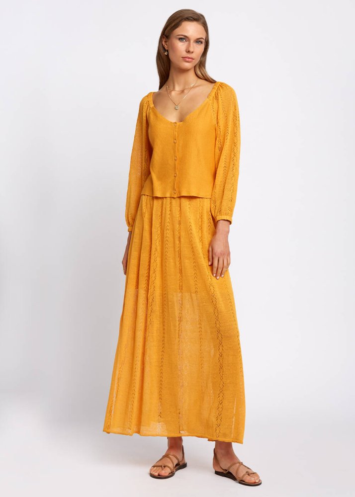 Pointelle Detail Mango Long Knit Skirt With Slit