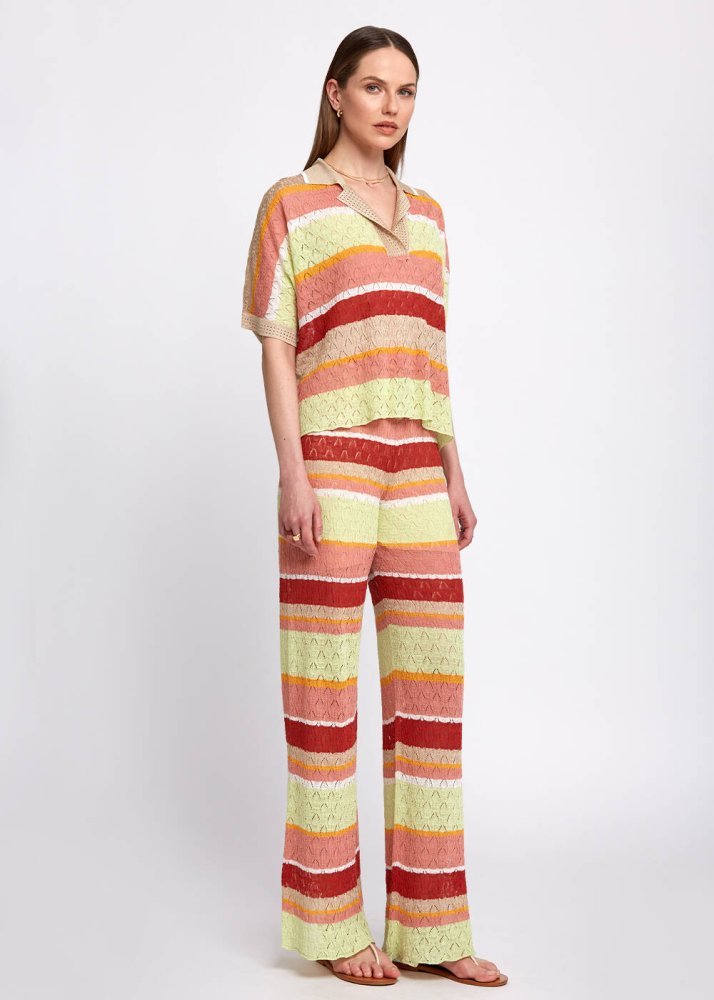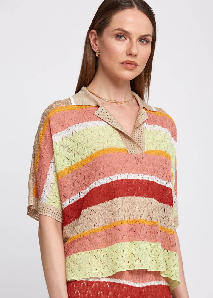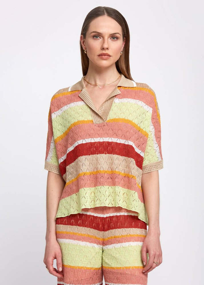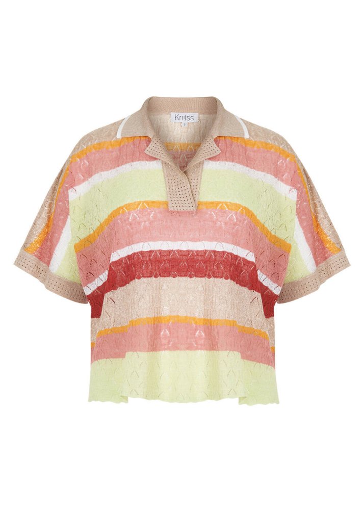 Pointelle Detail Striped Oversıze Knit Top