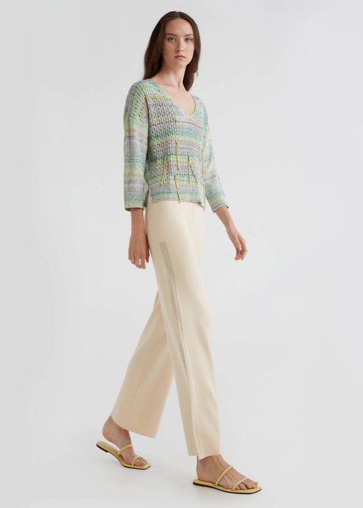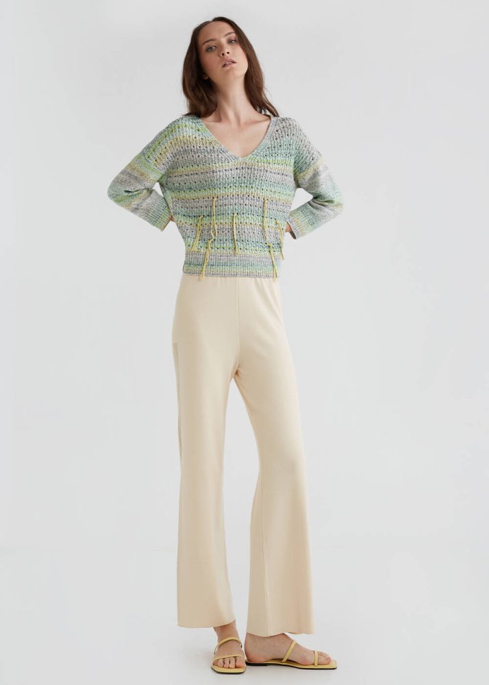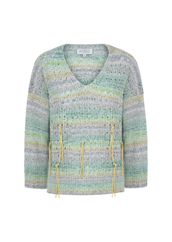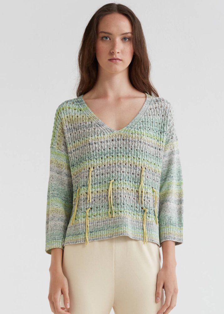 Pointelle Tassel Detailed Mint Knit Sweater
