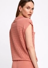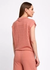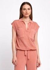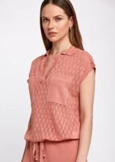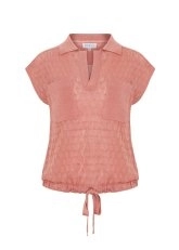 Polo Neck Drawstring Pocket Detail Rose Knit Shirt