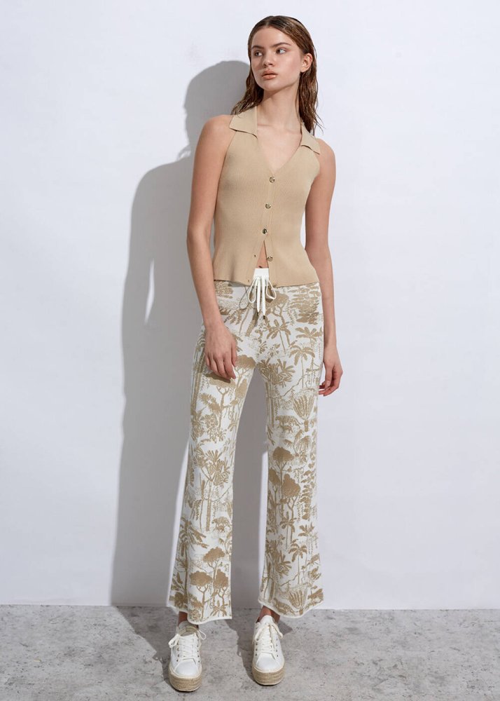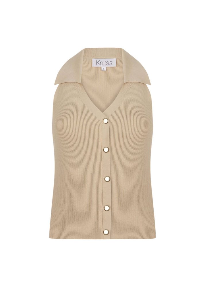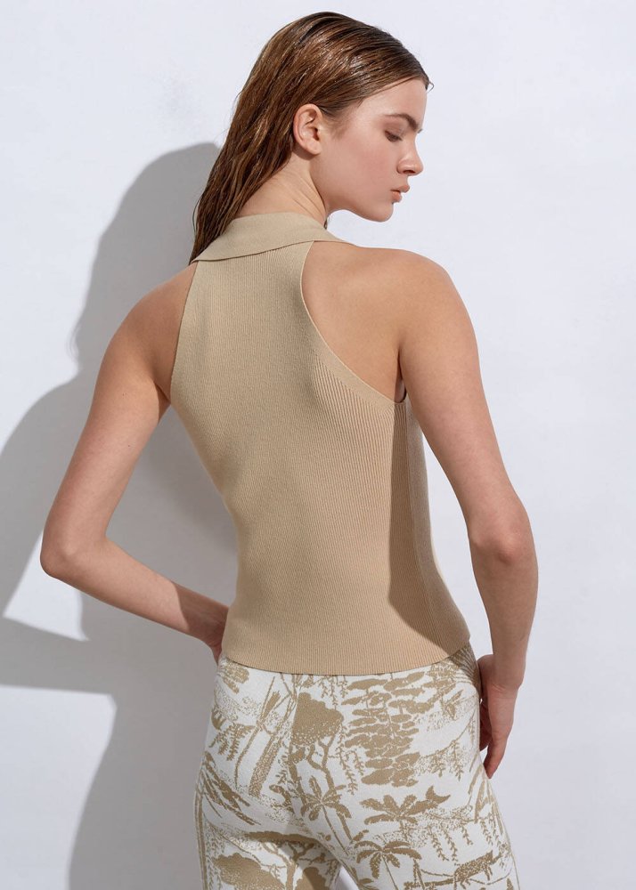 Polo Neck Fıtted Sand Knıt Top