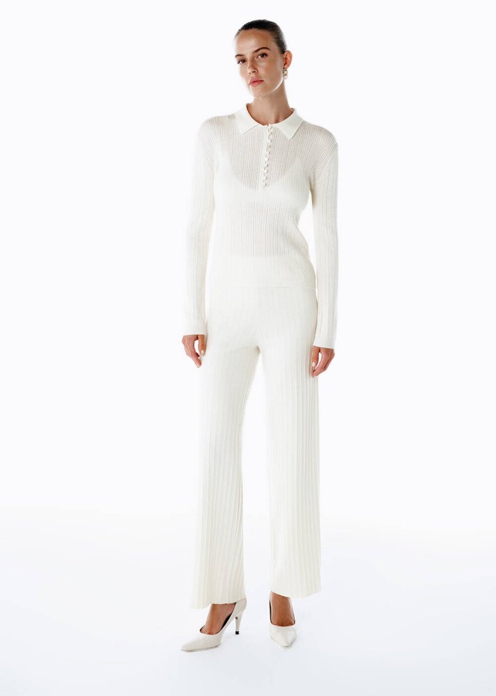 POLO NECK MERINO WOOL RICH BLEND KNIT TOP ECRU