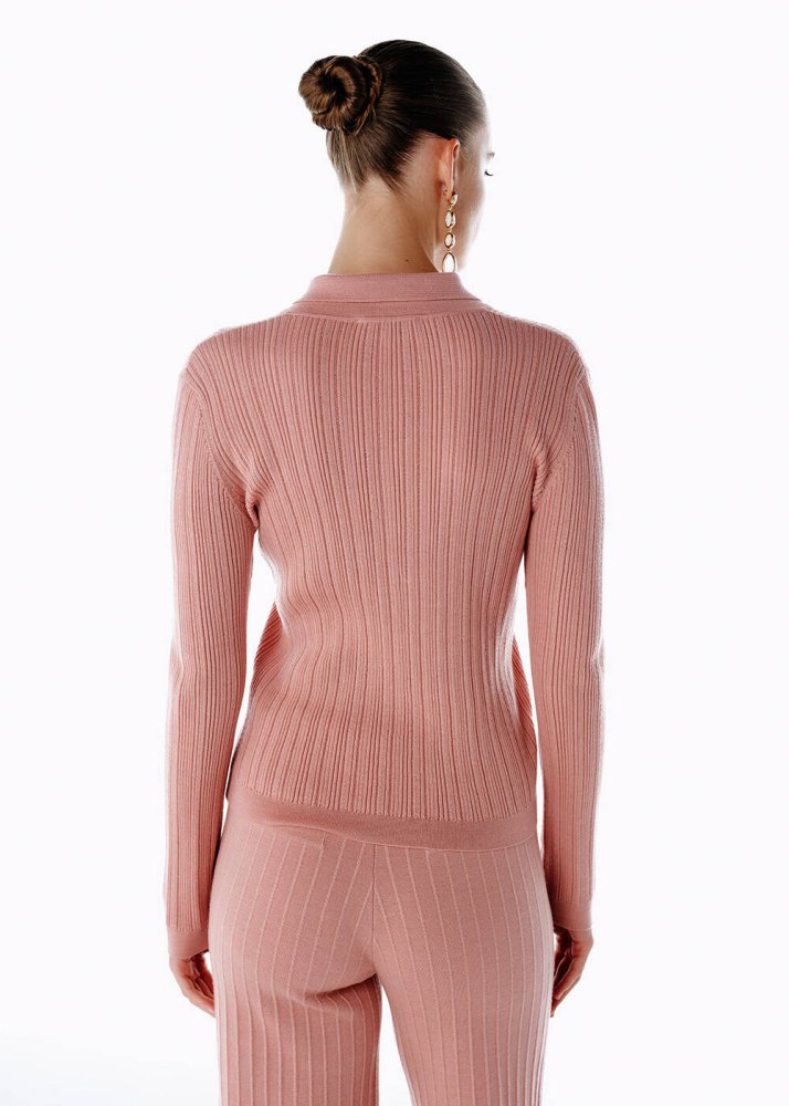 POLO NECK MERINO WOOL RICH BLEND KNIT TOP PINK CLAY