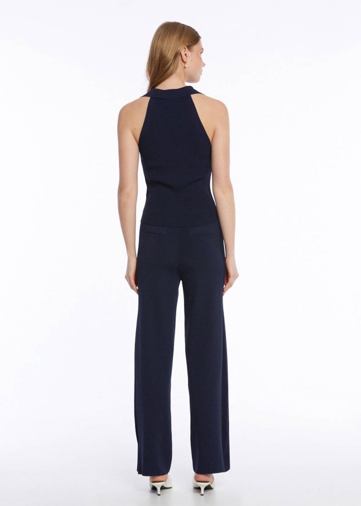 POLO NECK NAVY KNIT TOP