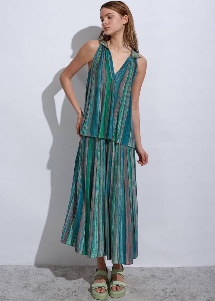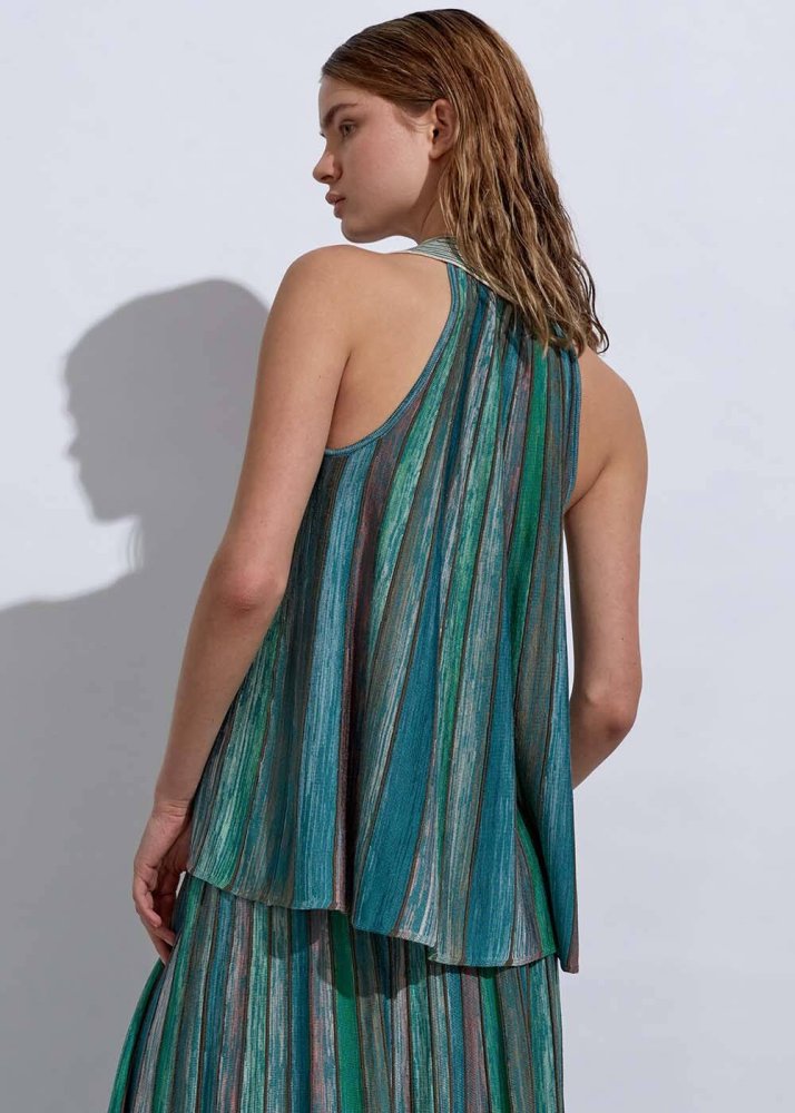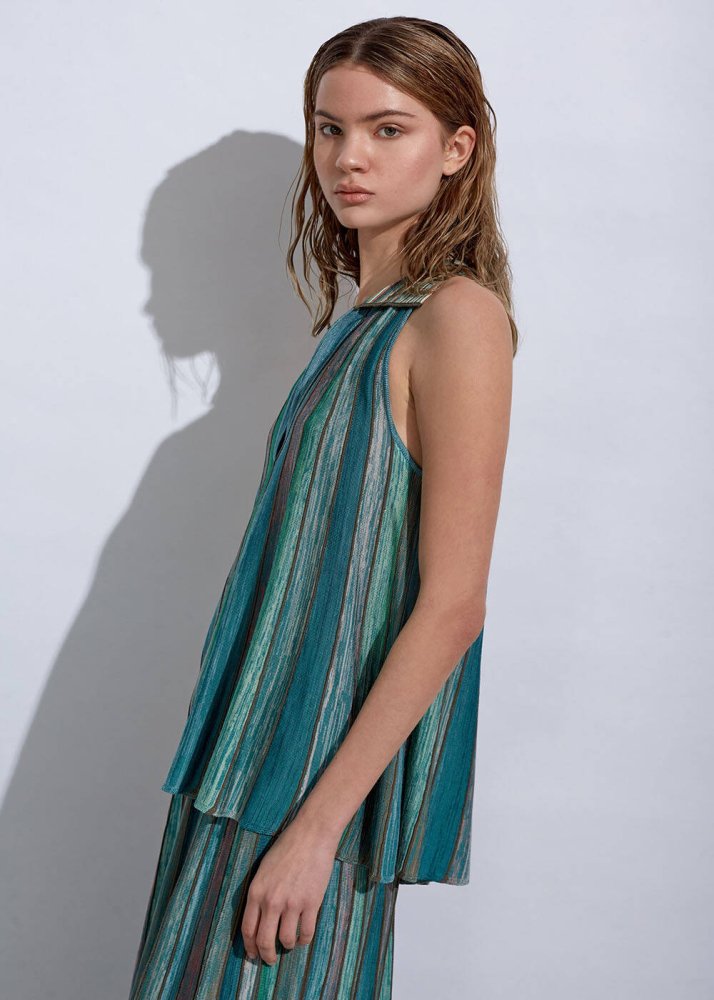 Polo Neck Strıped Verdıgrıs Knıt Top
