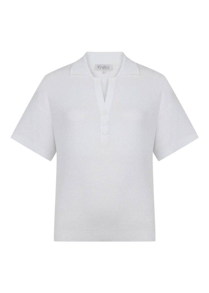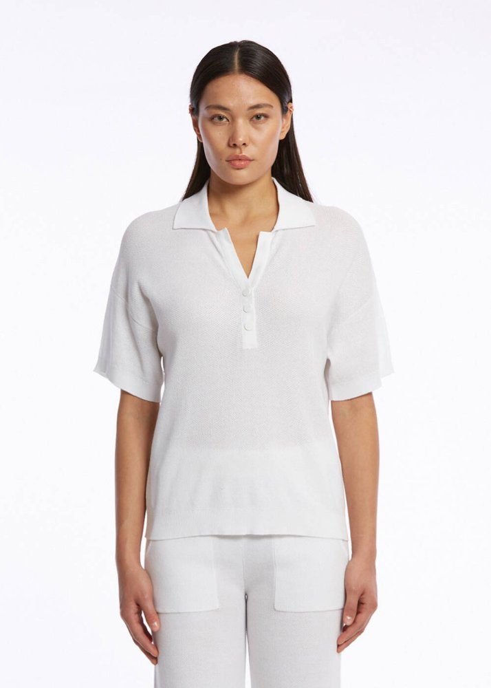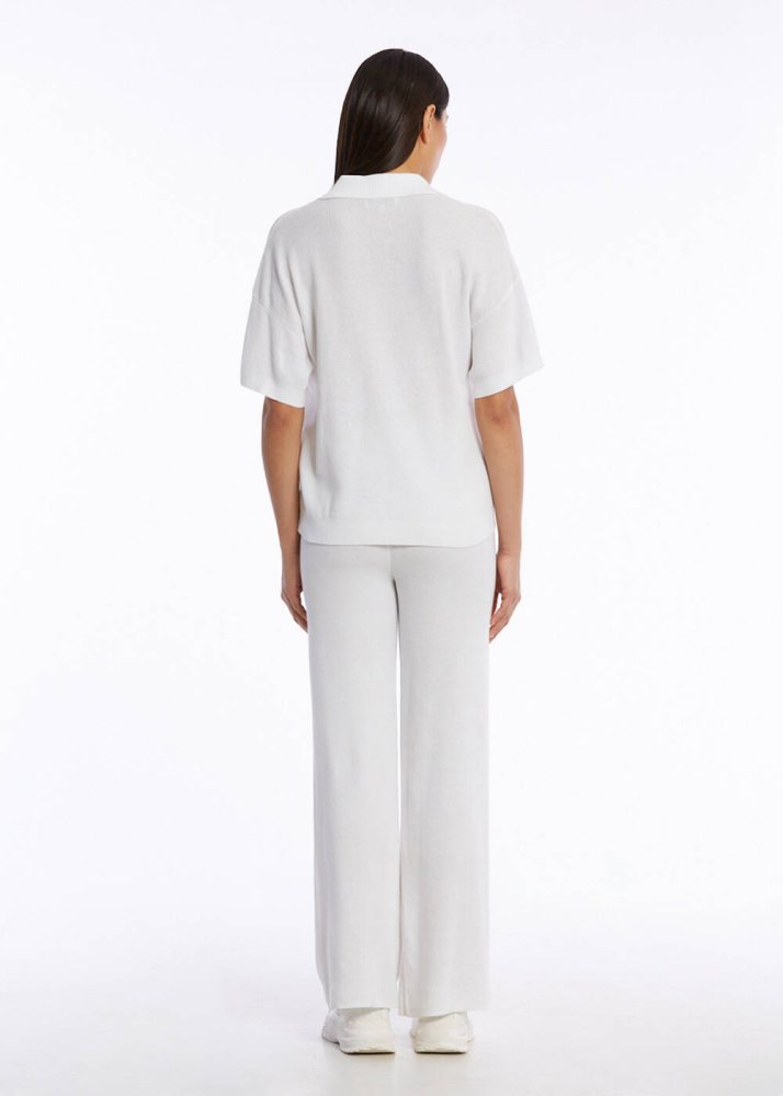 POLO NECK WHITE ORGANIC COTTON KNIT SWEATER