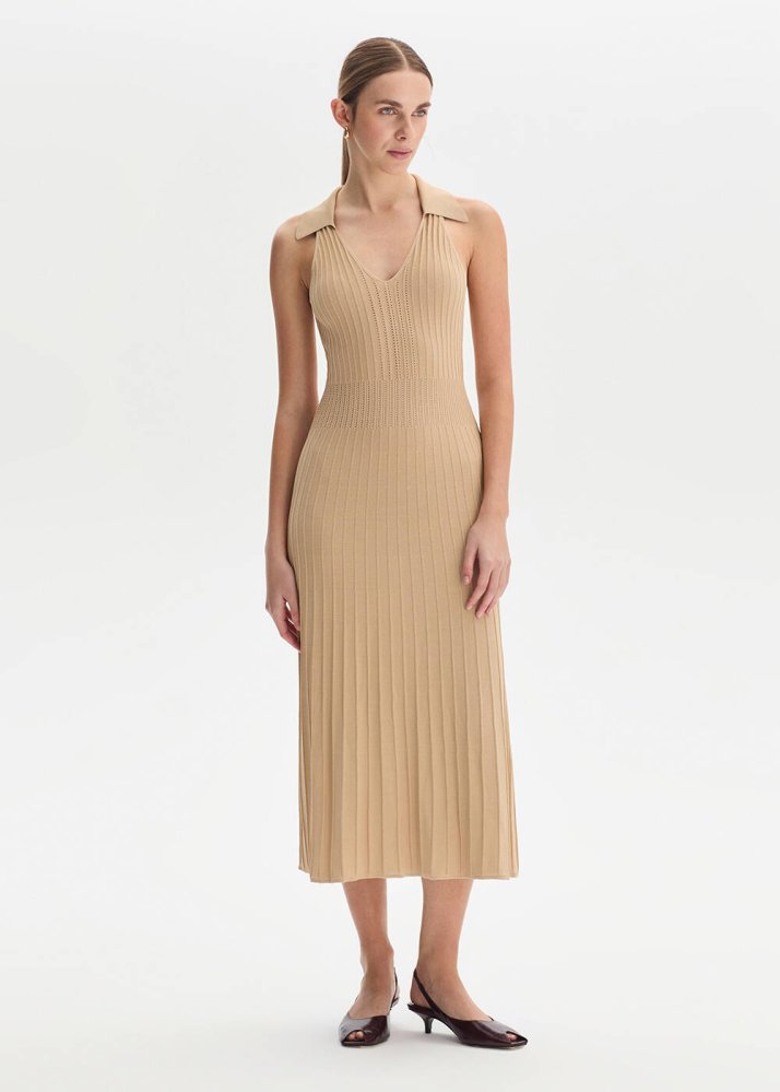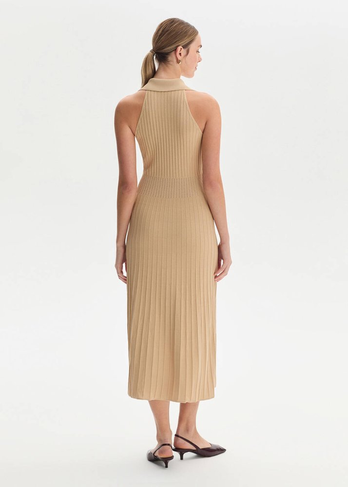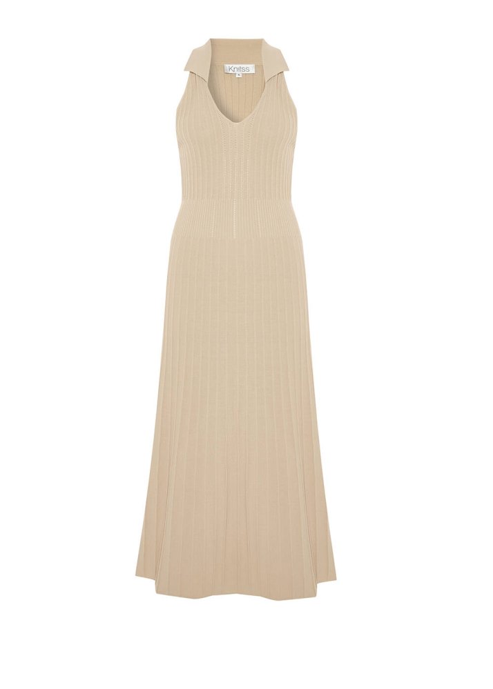 Polo Yaka Bej Triko Elbise