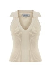 Gündüzden geceye şıklık sunan bej rengi polo yaka kolsuz triko üst ile yazlık kombinlerinize sofistike bir dokunuş katın. İnce fitil örgü detaylı işçiliği, mükemmel kalıbı ve çağdaş stili ile fark yaratan kum rengi polo yaka kolsuz üst, triko şıklığını ofis kombinlerinden gece davetlerine, günün farklı anlarına zahmetsizce taşır.