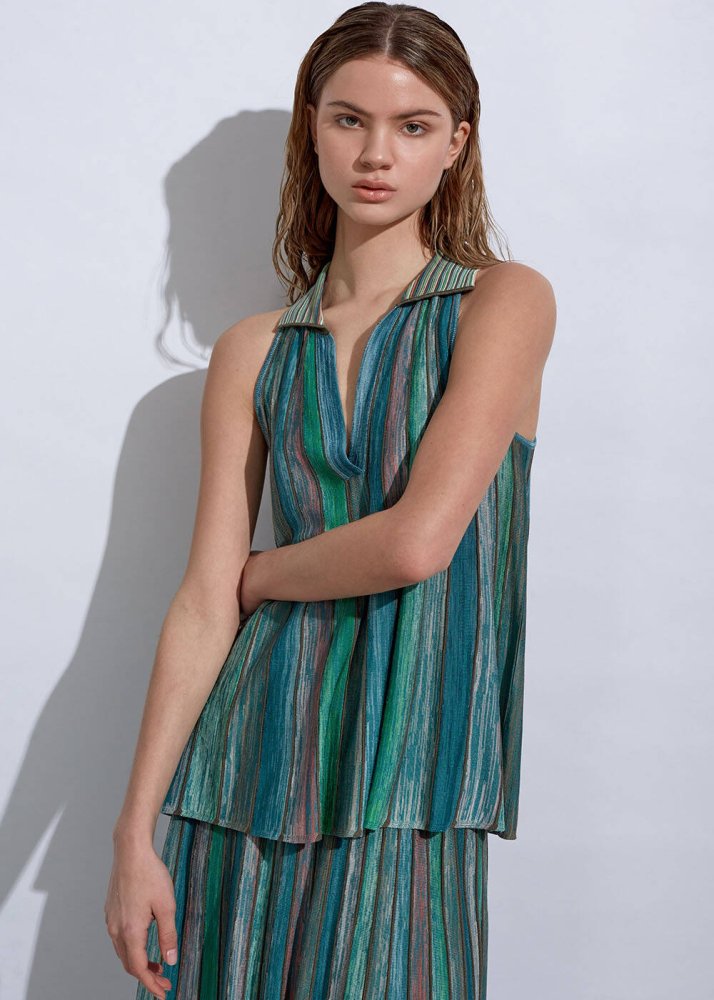 Polo yaka yeşil triko üst, çizgi desenli, dökümlü nefes alan yapısı ile yaz kombinlerinizin favori tamamlayıcısı olmaya adaydır. Biyolojik çeşitliliğin korunmasına yardımcı olan FSC sertifikalı İtalyan iplikten üretilen kadın triko üst modeli, yazlık business ve günlük kombinlerinize renk katacak mükemmel bir parçadır.