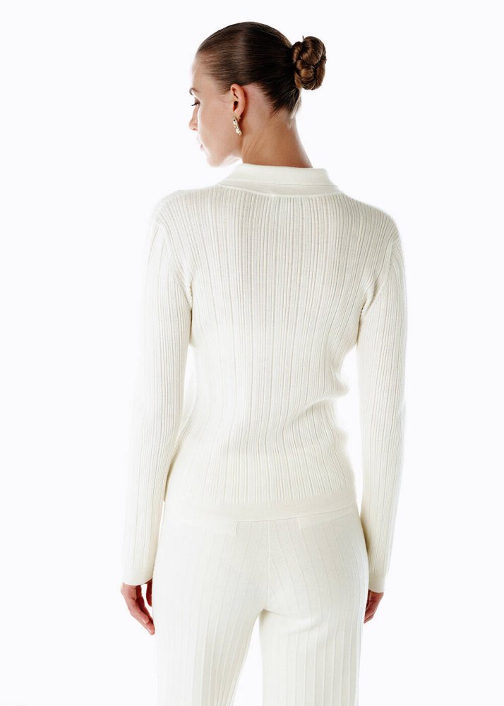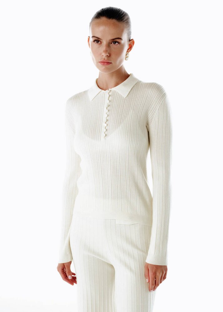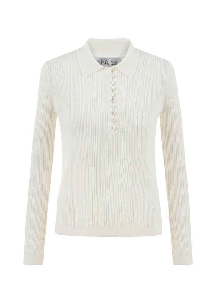 Polo Yaka Extrafıne Merino Yün Karışımlı Triko Ekru
