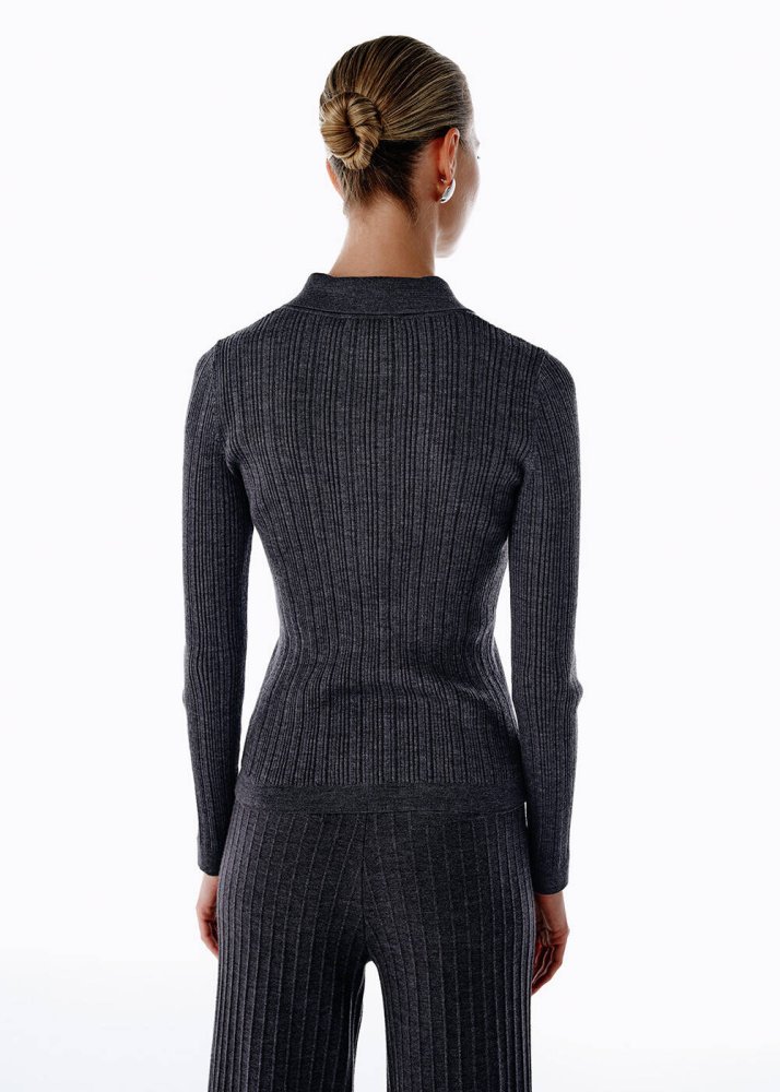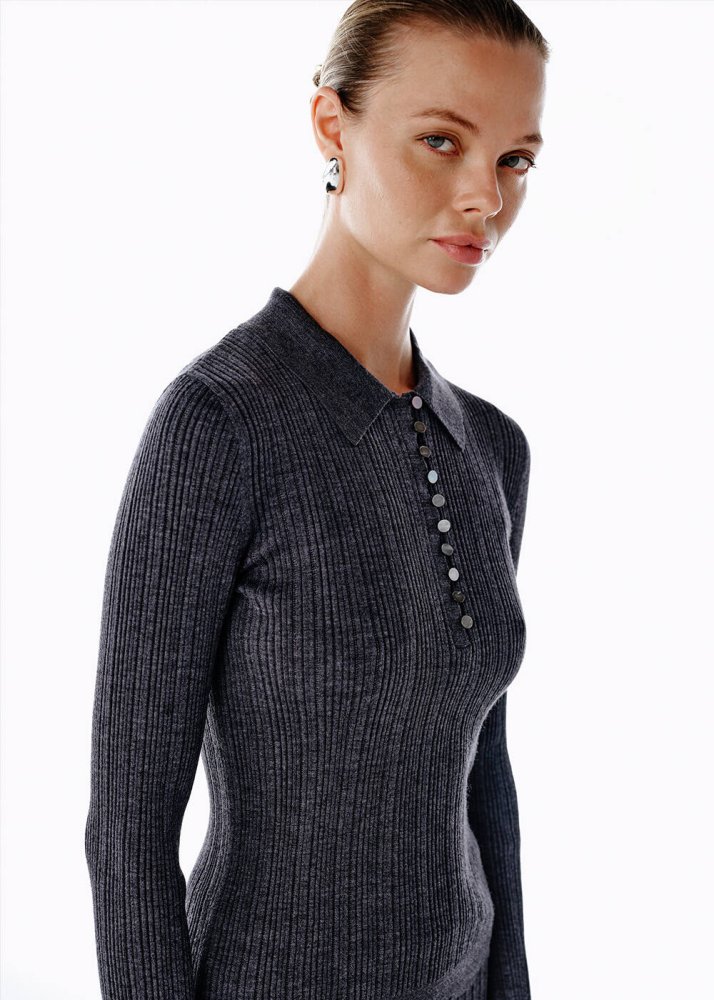 Polo Yaka Extrafıne Merino Yün Karışımlı Triko Koyu Gri
