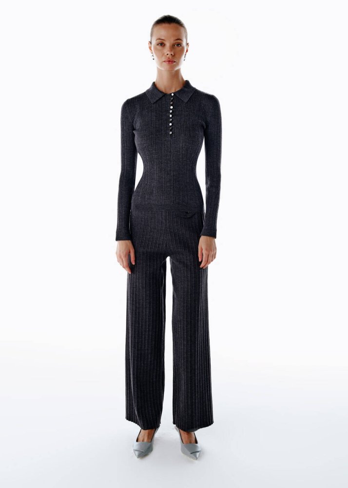 Extrafıne Merino Yün Karışımlı Triko Pantolon Koyu Gri