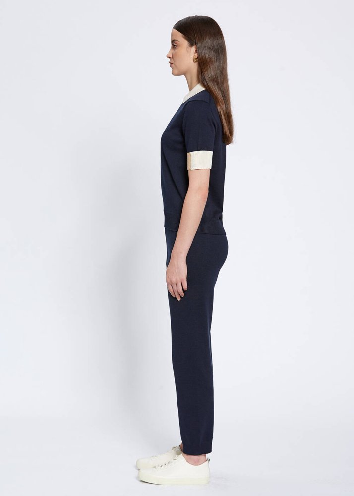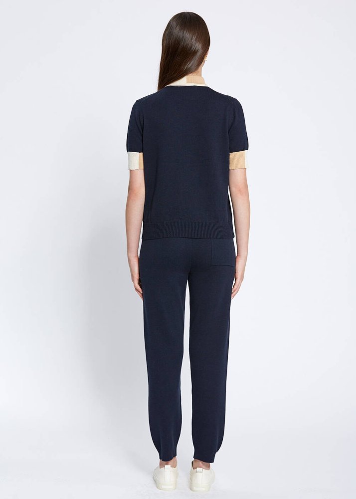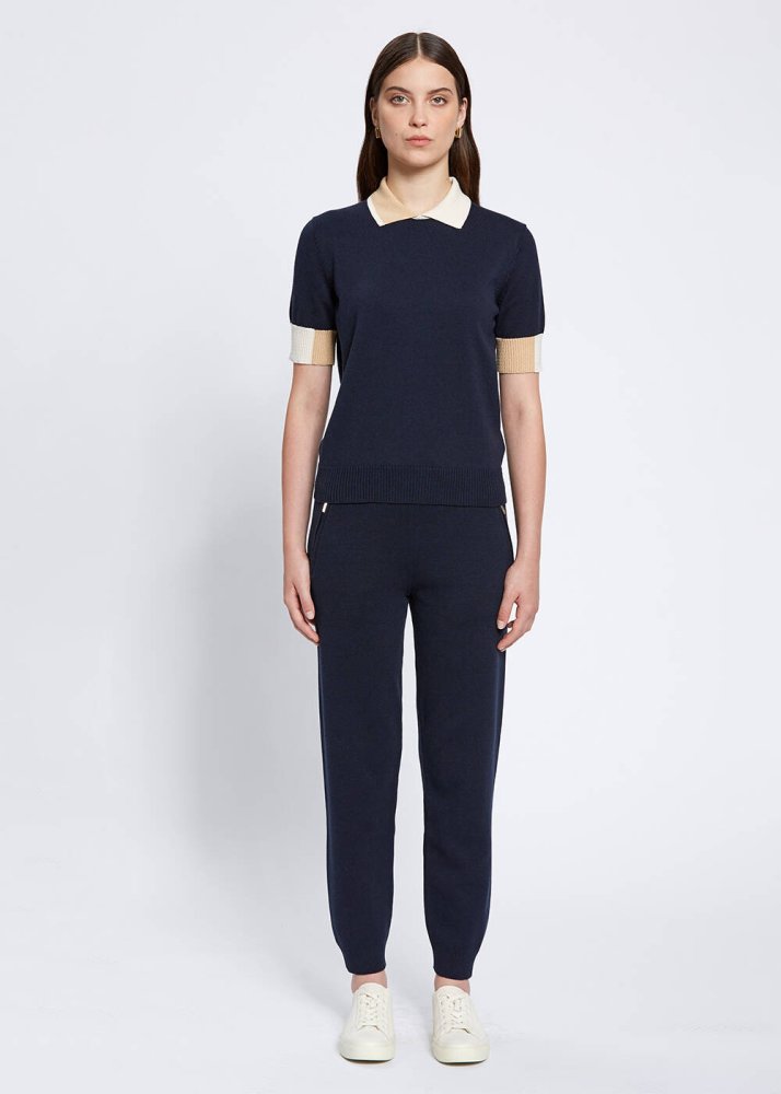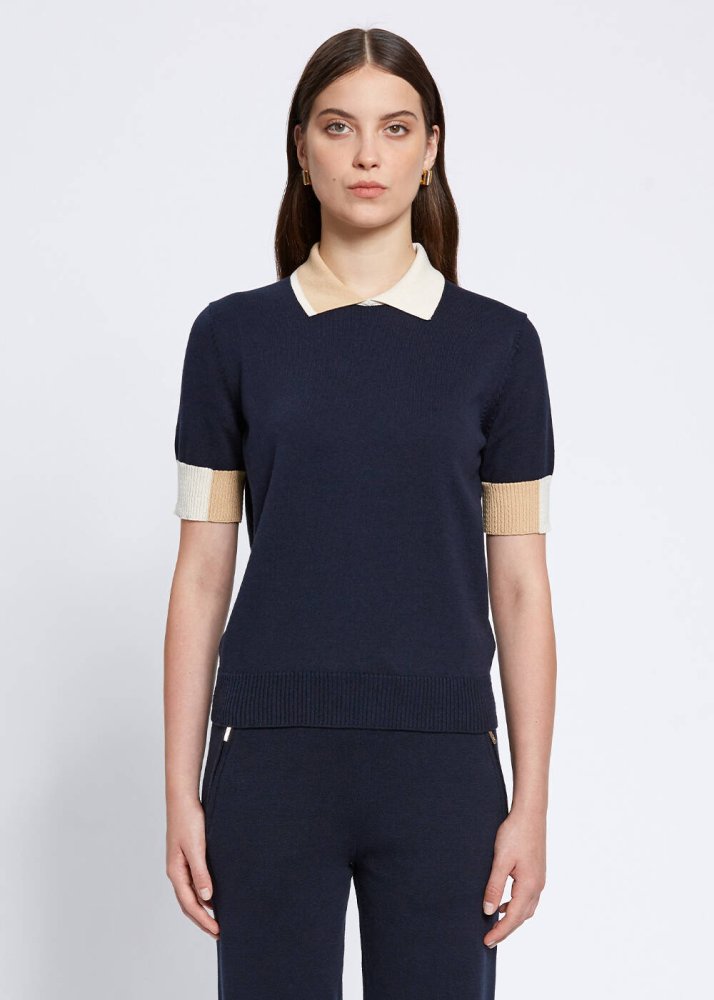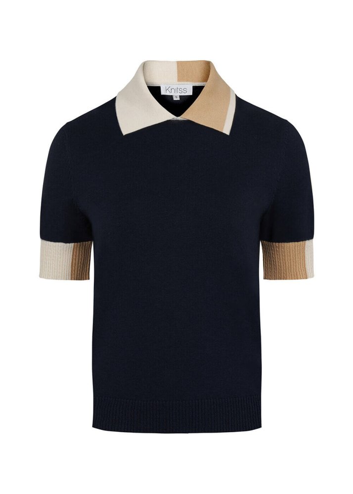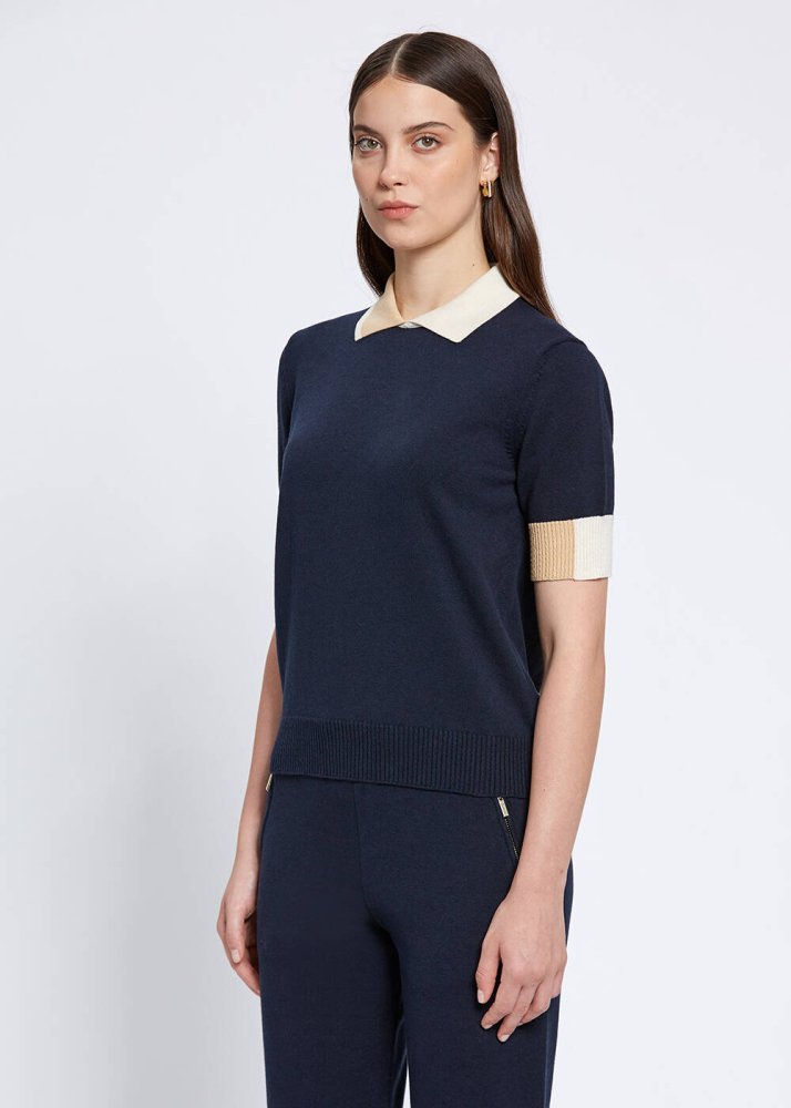Polo Yaka Kontrast Detaylı Lacivert Triko Üst