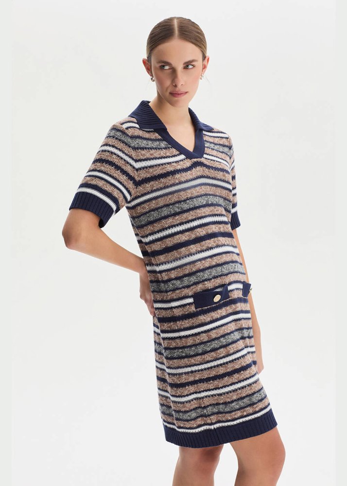 Polo Yaka Organik Pamuk Triko Elbise