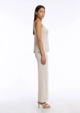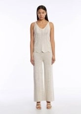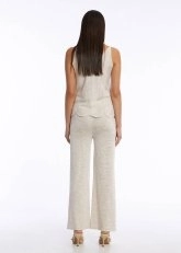 Rahat kesim kalıbı ve her stile uygun bej renge sahip triko pantolona, yazlık gardırobunuzda yer açın. Geri dönüştürülmüş ve sürdürülebilir yöntemlerle üretilen kadın triko pantolon modeli, çevreye duyarlı modern kadınlar için özel tasarlanmıştır.