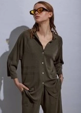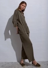 İncecik tuşesi ile yaz kombinlerinize serinlik katacak triko tunik, trend haki rengi ve ajur detayı ile keşfedilmeyi bekliyor. Rahat kesim triko tunik, FSC sertifikalı İtalyan iplik kalitesi ile çevre dostu giyim prensibinin üyelerindendir. Business ve hafta sonu stilinize uyumlu kadın triko tunik modeli, takımı olan Dahlia Pants’la birlikte kombinleyebilirsiniz.