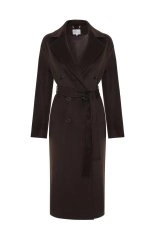 Toprağın derin tonlarından ilham alan koyu kahverengi kaban, sizi doğanın dinginliğiyle buluştururken şehrin modern ritmine de eşlik ediyor. Düğmeli kapanışı ve bele bağlanan kuşağıyla zarif bir siluet ortaya koyuyor. %100 yün kumaşın sunduğu sıcaklık, kış günlerinde konforu garanti ederken, minimal çizgileri ve akıcı formu elegant bir sadelik sağlıyor. Hem gündüz stilinde hem akşam davetlerinde zamansız bir parça olarak gardıroba değer katıyor.