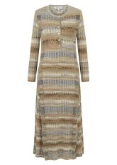 Renklerin ritmiyle dans eden bir tasarım. Organik pamuk triko elbise, geçişli tonların yarattığı görsel hareketlilikle dikkat çekiyor. Sade çizgileriyle minimal bir zarafet sunarken, renklerin uyumlu akışı parçada şiirsel bir canlılık yaratıyor. Yumuşacık organik pamuk dokusu sayesinde konforlu, doğal ve sürdürülebilir bir şıklık vaat ediyor. Gündüz sneaker’larla sportif bir stil yaratabilir, akşam ise topuklularla modern bir zarafete dönüştürebilirsiniz.
