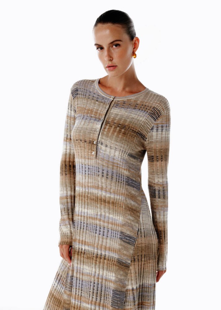 Renk Geçişli Organik Pamuk Triko Elbise